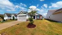 Welcome to the Fields at Oakwood, a desirable community offering maintenance- free living with lawn care included. This open- concept Aruba Bay plan features 2 bedrooms, 2 baths, and a versatile flex room for dining or office space. Highlights include a stone and Hardie board exterior, stainless steel appliances with gas range and refrigerator, quartz countertops, kitchen island, and LVP flooring throughout main living areas. The owner’s suite offers a walk- in shower with upgraded ceramic surround. Additional features include a tankless gas water heater, laundry, and 2- car garage.
