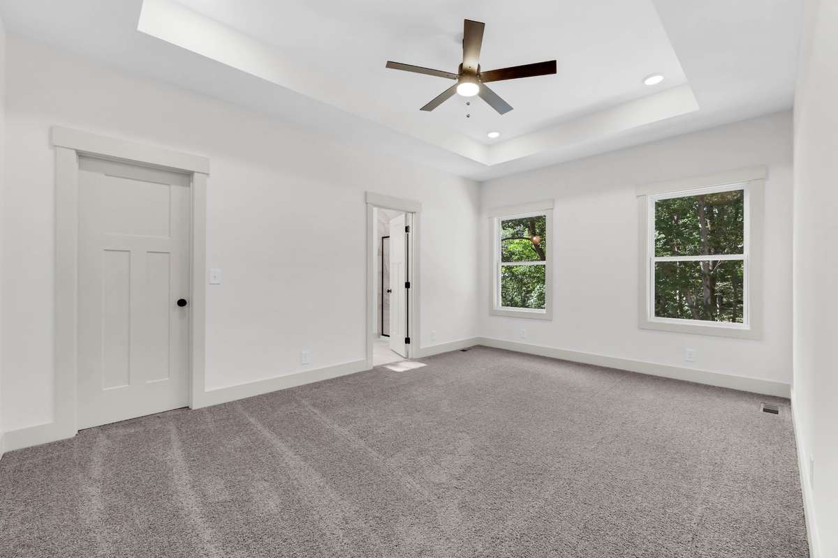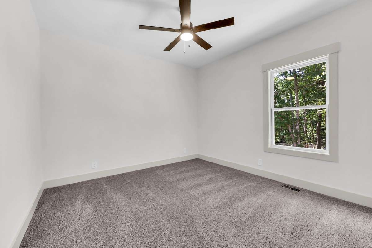 The spacious primary suite offers a walk- in closet and a luxurious bath with double vanities, tile flooring, and a stunning tile walk- in shower. Craftsman- style trim and doors add charm throughout the home, complemented by a decorative lighting package. Enjoy the convenience of a separate laundry room, plus outdoor living with a covered deck overlooking a large & level backyard with mature trees.
