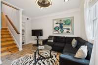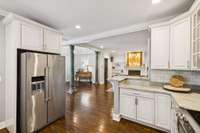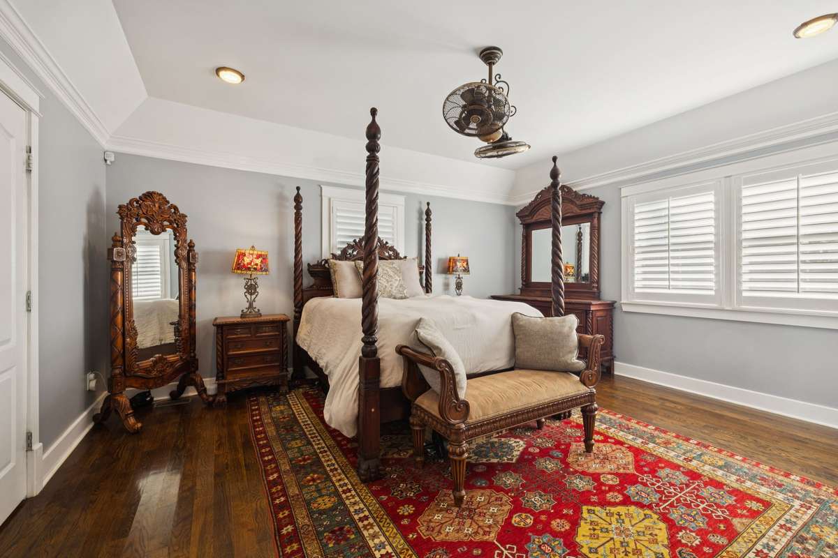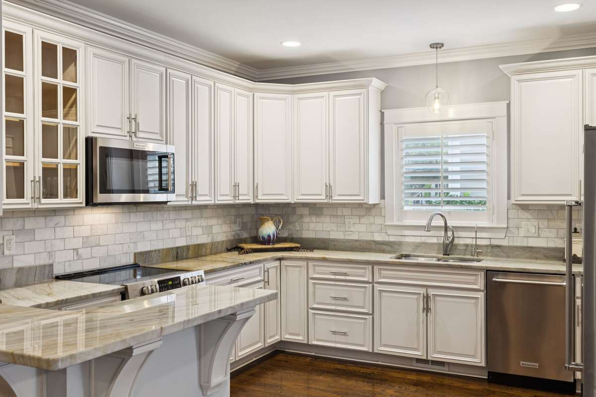503A FEATURES: Columns in foyer were rescued from a historic temple in India set for demolition. These columns are decorative and can be removed. Windows feature plantation shutters. Backsplash in kitchen was added by seller, along with tankless water heater and a new HVAC unit downstairs. All appliances in kitchen are to remain with property, as well as, the washer and dryer in laundry room. The two fireplaces are no longer functional and were sealed off when the home was originally renovated in 2016, however, they could be converted for electric fireplaces. The luxurious primary bathroom suite comes with a marble counter top, marble floor and walls, a large walk- in shower and an antique cast- iron free standing bathtub. Bonus room and two additional bedrooms and bathroom with double vanities located on second floor.