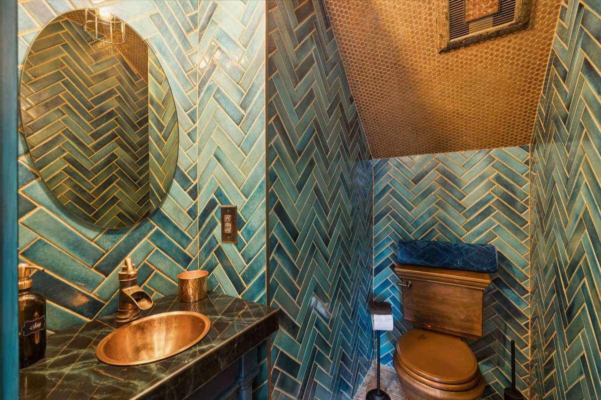 503B FEATURES: Van Gogh " Starry Night" mural on privacy fence adds unique charm for Airbnb guests. Kitchen and bathrooms in guest house have copper fixtures, tiled walls in half bath were handmade in Spain, washer and dryer in laundry room behind hidden door will remain, all furniture in guest house to remain. Dining room table is negotiable with an acceptable offer.