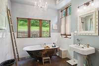 Step into the past with all the comforts of the present in this beautifully restored early- 1900s farmhouse. Thoughtfully renovated with reclaimed wood and period- appropriate details, this 2- bedroom, 2- bath gem blends rustic charm with subtle modern updates. Large windows stretch across the back of the home, filling the living spaces with natural light and offering stunning views of peaceful, tree- lined surroundings. Enjoy the serenity of nature while being just minutes from shops, dining, and everyday conveniences. A rare blend of history, craftsmanship, and location—this home is perfect for those who appreciate authenticity and warmth.