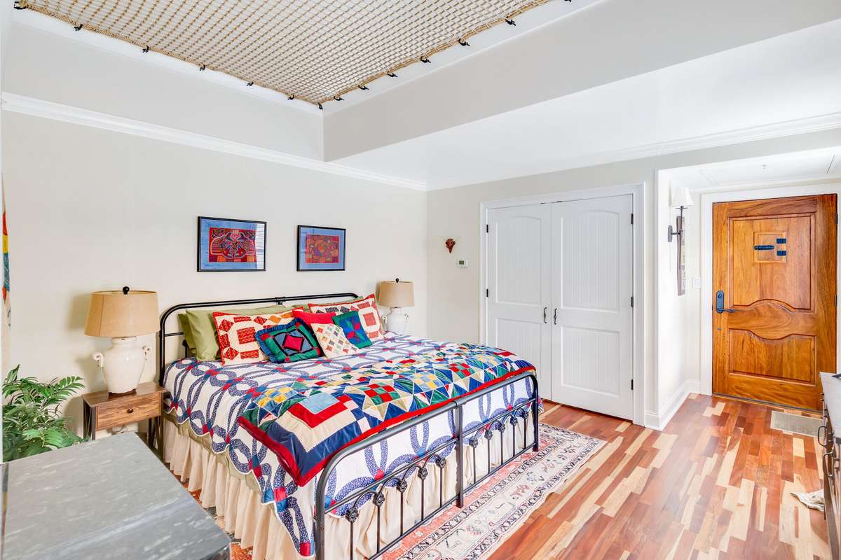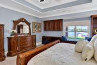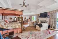 The primary suite is nothing short of a personal retreat. Complete with a private gym outfitted with Olympic- grade equipment, a steam room, and a sunroom perfect for unwinding, this space is designed for indulgence. His- and- hers walk- in closets with built- ins, double vanities, a jetted tub, a luxurious tile shower, and two fireplaces add to the opulence. For ultimate convenience, the suite includes a laundry area and a bidet.