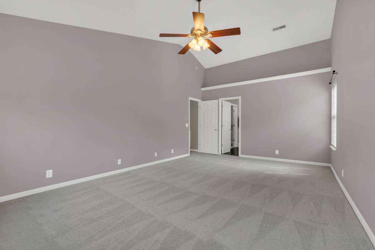 Primary large bedroom virtually furnished.  The bed could easily be put on opposite wall.