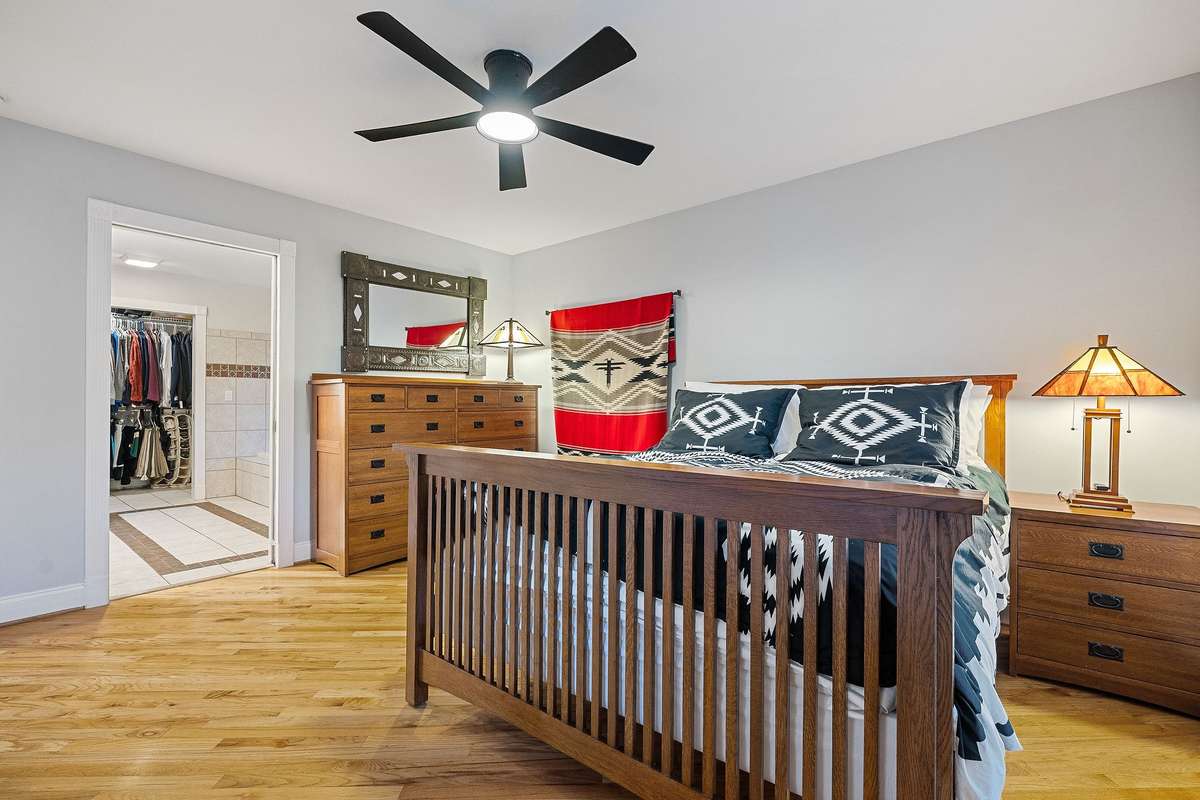 Downstairs, you’ll find a gym- quality fitness room, fully equipped with professional- grade workout equipment—all included with the home. A John Deere tractor and all implements are also included, making property maintenance easy and efficient.