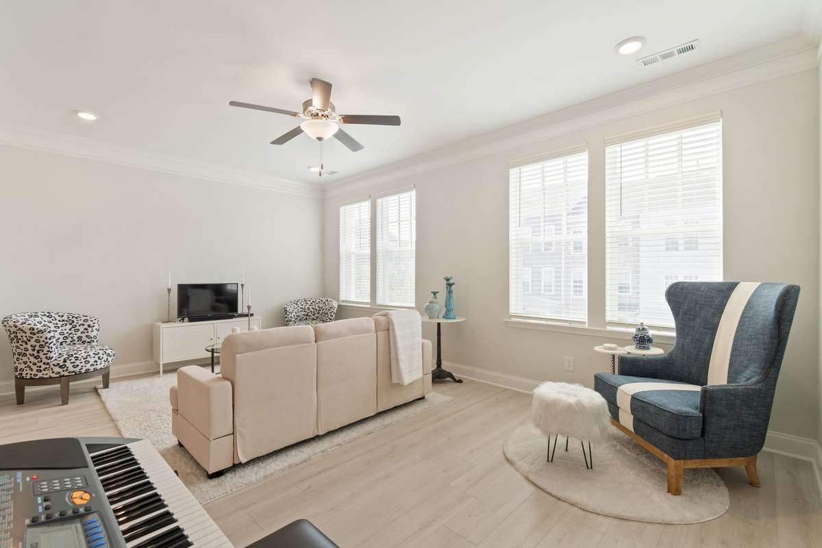 Gorgeous, like- new townhome elevated with sophisticated designer finishes located in the highly sought- after, walkable, Burkitt Commons community—just minutes from the heart of Nolensville. Step inside to a light- filled, open floor plan enhanced by gorgeous wood flooring ( no carpet) , recessed lighting, upgraded fixtures, new blinds, and crown molding throughout. Upon entering, you' ll find a bedroom or office complete with a full bath - perfect for a roommate or family member to have their own space. The main floor features a gourmet kitchen, showcasing upgraded cabinetry, quartz countertops, a sleek modern backsplash, and an expansive island perfect for entertaining. The 3rd level features two spacious bedrooms each with their own full bath, offering comfort and privacy for family or guests. The primary suite impresses with a tray ceiling, custom frameless tile shower, and spa- like upgraded bath. The two- car garage includes an epoxy floor for a polished, durable finish. Enjoy a low- maintenance lifestyle with community amenities including a dog park and pocket park—plus walking distance to local shops and eateries. A rare blend of style, comfort, and convenience awaits!