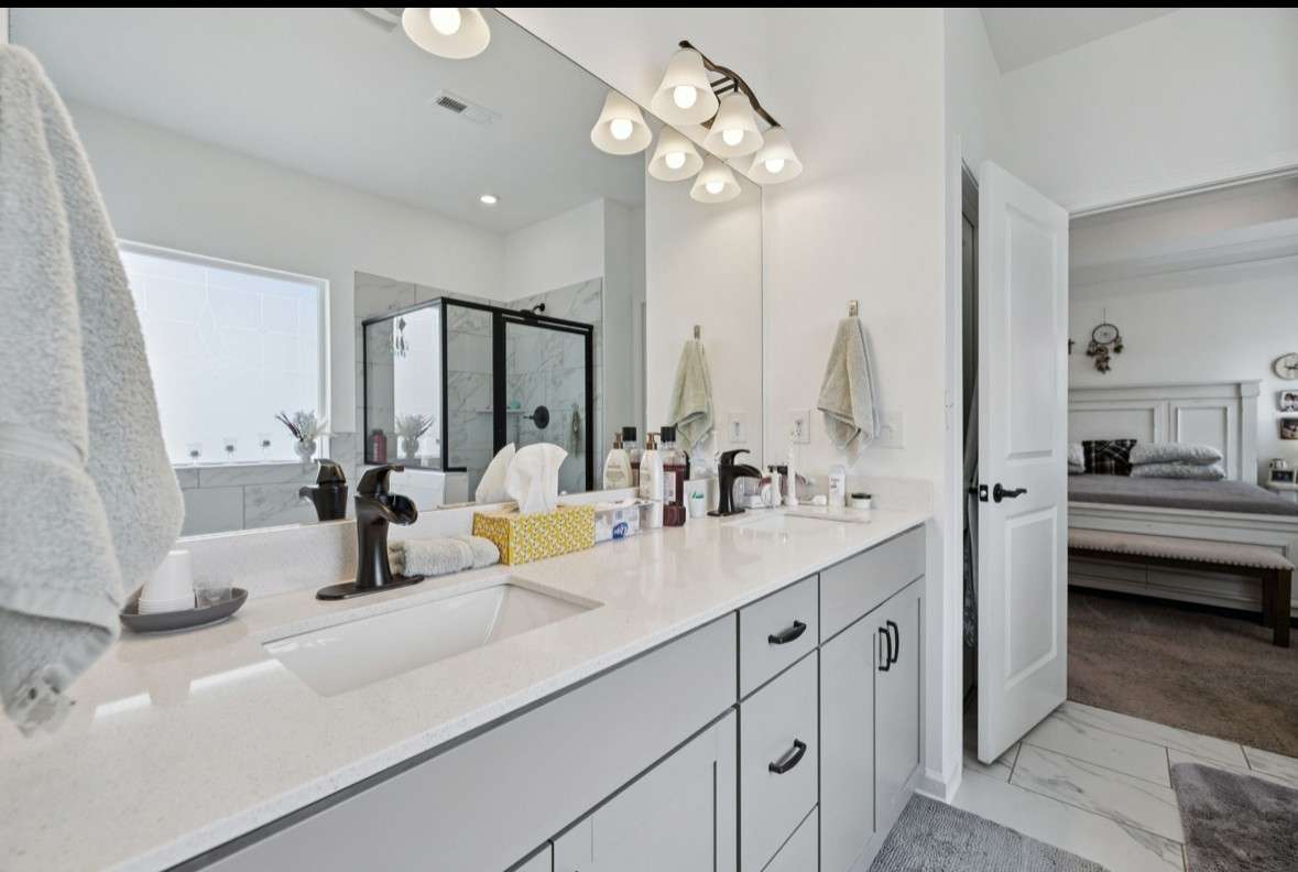 This home comes move- in ready with both refrigerators, large black garage shelving, and a like- new washer and dryer included. Perfectly situated, it’s just steps from the central mailbox area and only a short walk to the neighborhood playground.