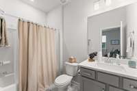 Generously sized secondary bedrooms and full bath complement the layout, while the owner’s suite features a private bath with dual vanities and an oversized walk- in closet.