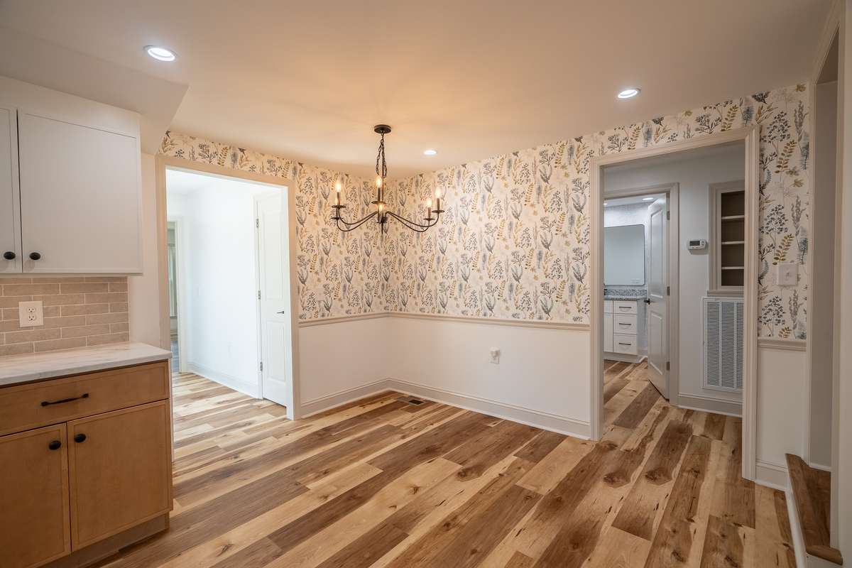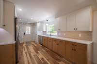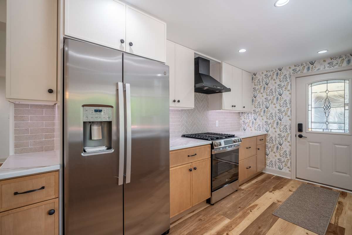 This charming 4- bedroom, 3- bath home blends modern updates with classic country appeal. The main level features all- new LVP flooring, a fully updated kitchen with brand- new cabinetry with quartz countertops. The kitchen also has under- cabinet lighting, garbage disposal, tile backsplash, and stainless steel appliances—including a gas stove. A brand new LG stackable washer and dryer add convenience. New cabinets with quartz and granite throughout the home.