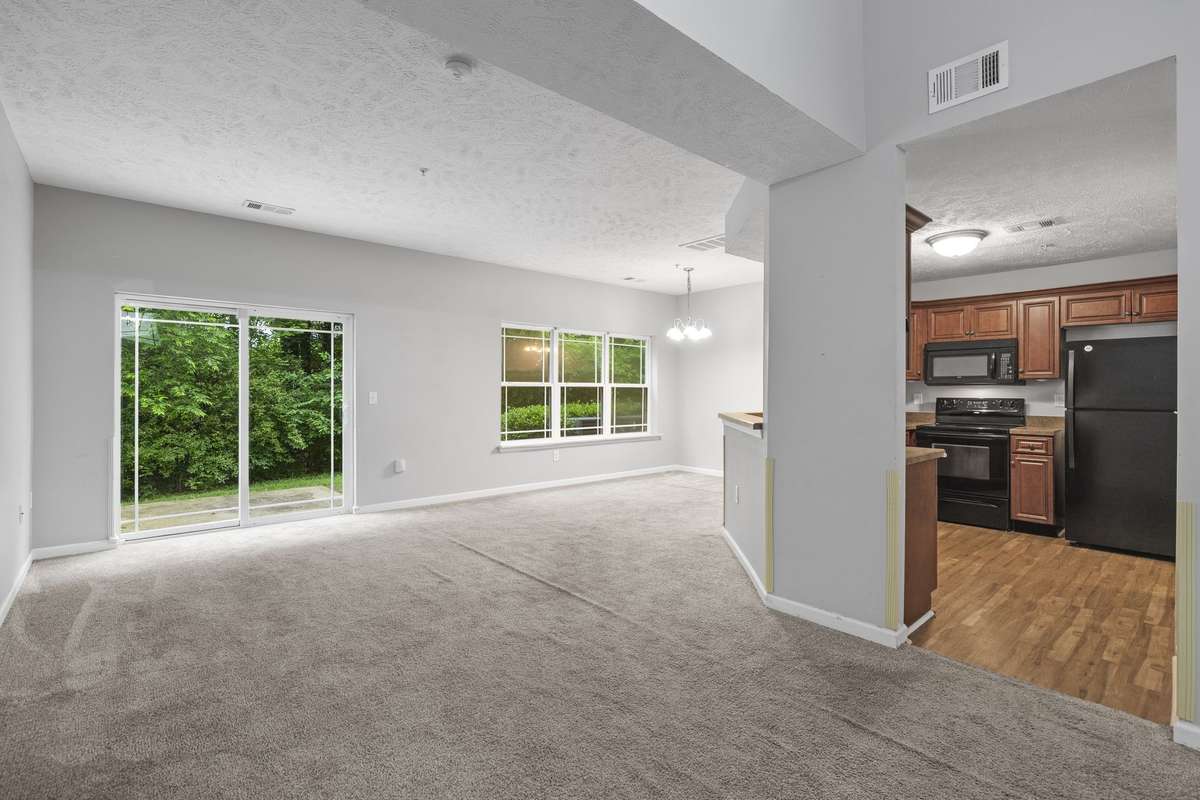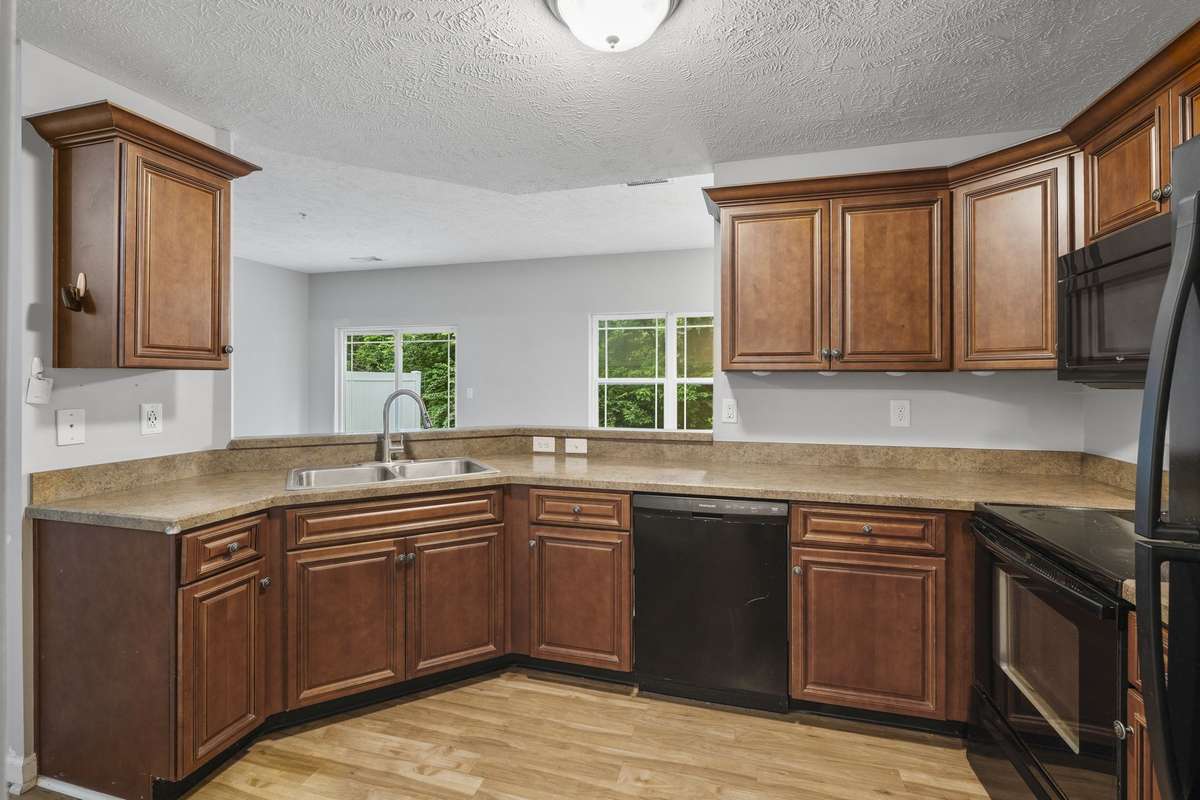 The kitchen includes all major appliances, while the private back porch overlooking a wooded tree line offers a peaceful retreat. Enjoy the benefit of a brand- new HVAC system, a two- car garage with great storage, and access to fantastic community amenities including a pool, clubhouse, fitness center, playground, and walking trails.