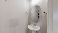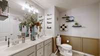 Three bedrooms upstairs, including a primary suite with walk- in closet and en- suite bath