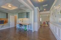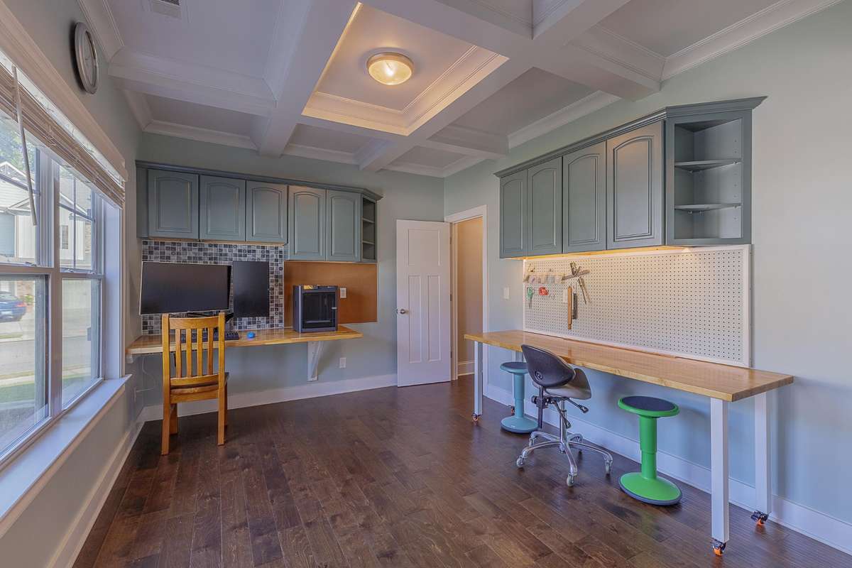 For those with a green thumb, a dedicated garden area awaits your personal touch. Step inside to a gourmet kitchen equipped with a large island, granite countertops, stainless steel appliances, and a convenient pantry. The open floor plan seamlessly connects the kitchen to the living spaces, including a separate dining room or office and beautiful lighted built- ins in the family room. Just off the dining room / office, you' ll find a '' Harry Potter' ' cubby for reading, dreaming, or storage.
