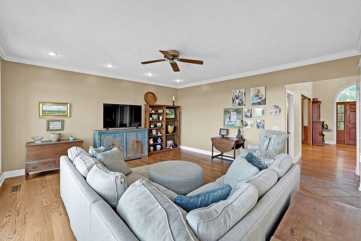 Beautiful all brick 4- bed, 3. 5- bath house located along the Cumberland River in Carthage, TN. Recently renovated kitchen and living room. Kitchen includes new appliances and quartz countertops. Living room includes new hardwood flooring and paint. New exterior doors as well! Home has a private study with gas fireplace, formal dining room, new deck with a portion of the deck being screened in. All bedrooms located upstairs. Renovated master bath. Two- car attached garage and an additional six- car detached garage with finished area above. Detached garage approximately 2, 400 square feet. Detached garage has room for boat storage. Current owners previously had a wakeboarding boat stored in detached garage, so no need for slip rental or off- site boat storage!