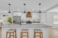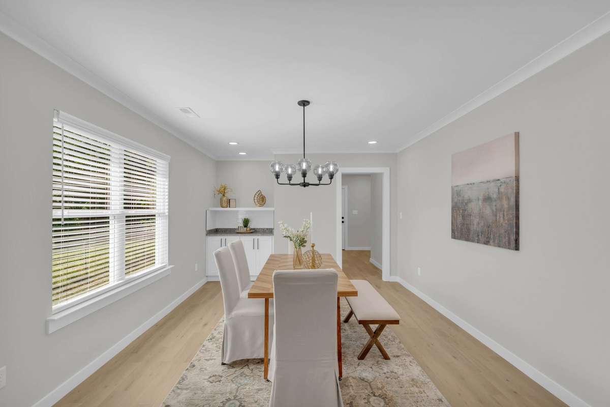 The spacious kitchen is the centerpiece of the home, featuring a large kitchen island and plenty of room for gathering. The adjoining dining area is flexible enough to serve as two separate spaces—ideal for entertaining or creating a cozy breakfast nook.