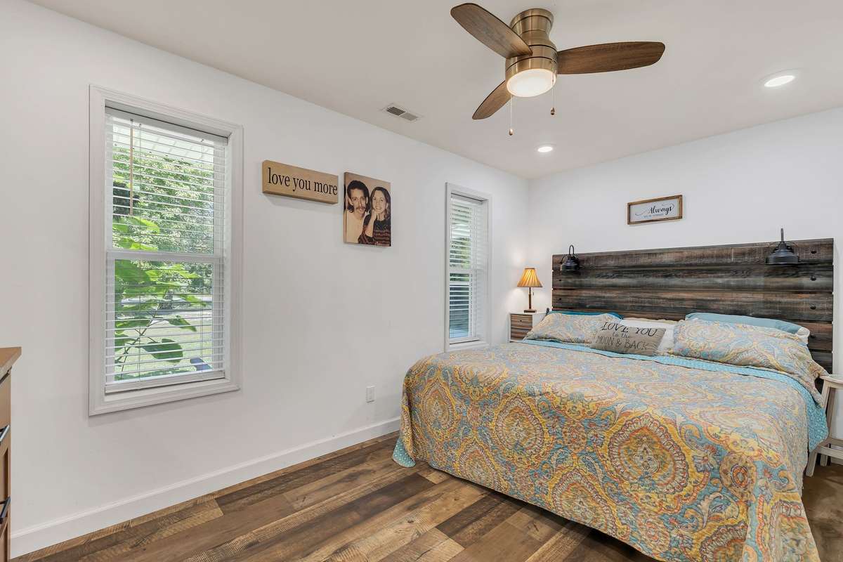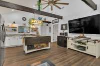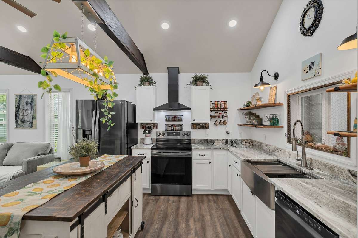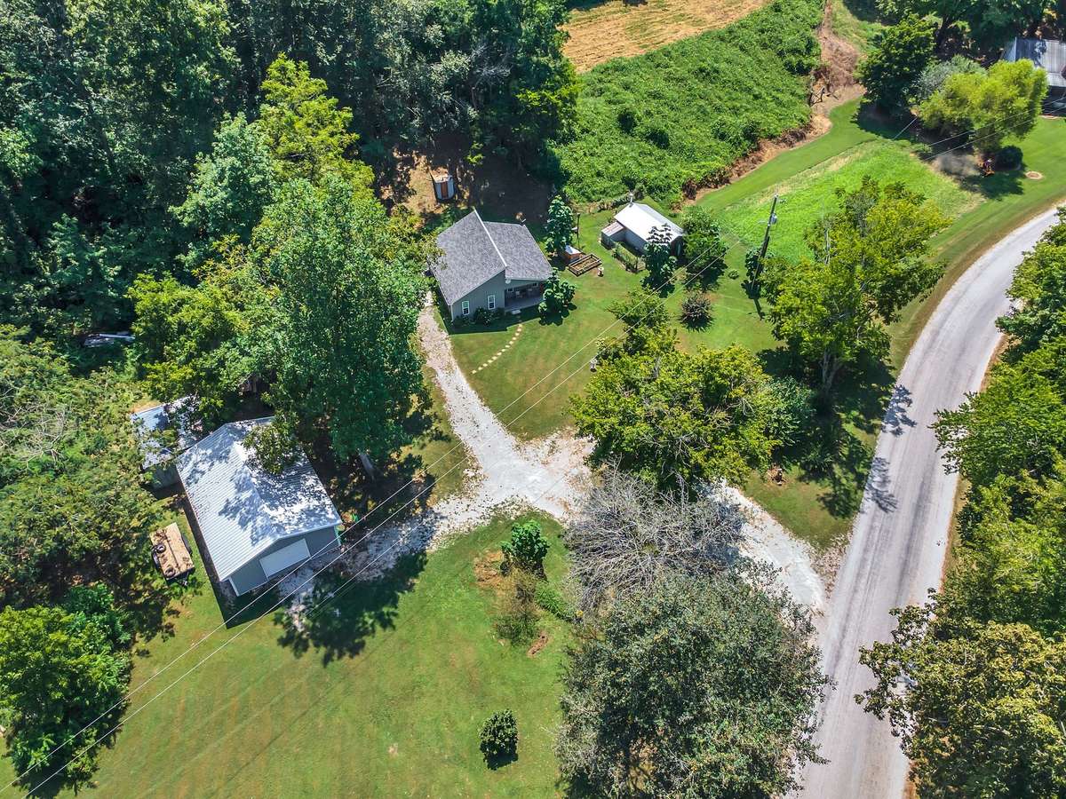 CREEK! SERENITY! 4. 56 COUNTRY ACRES! 24' x36' 220 wired shop building with sound studio! Take a look at this adorable custom built metal siding home sitting on lush, beautifully landscaped, sit back, relax overlooking your very own creek! This split roof style home features open floor plan, 2' x6' exterior walls, 12 ' Vaulted ceiling on west side with stained glass transit windows. Large rustic beams. LVP flooring. Large island with drop down leaf. Disk lights throughout. Beautiful Granite countertops, Stainless appliances all stay. Split Farmhouse stainless sink. Huge mudroom/ pantry. Large bedroom with Walkin closet. Large custom tiled wet room, claw foot tub, multi jet shower. High speed fiber internet! 14x23 patio. 12x21 She shed. Wired, plumbed, insulated. 8x20 shipping container, in great condition also available. Storm shelter. Additional shop building. 2 chicken coops. Fruit trees, grape vines. Amish Country but just off main highway.