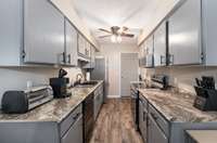 The interior features laminate flooring, stainless steel appliances, and neutral gray paint throughout. The efficient floor plan makes good use of the space, and the fenced backyard provides privacy and flexibility for outdoor use. The home is located in an area experiencing continued growth and redevelopment, offering long- term potential.