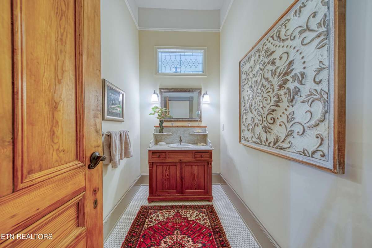 Features inside the home include a spacious den and primary bedroom and updated kitchen- designed to accommodate contemporary life. Especially stylish details include dining room cupboard, pantry, office bookcase, and unique antique guest bathroom sink cabinet.