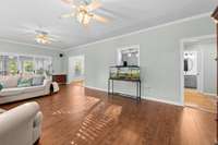 Home sweet home! Experience the ultimate in comfort and convenience in this exceptional residence. Offering a unique opportunity for rental income, an in- law suite, or college student apartment above a 2- car detached garage, this property also features a sunroom perfect for morning coffee. Beautiful real hardwood flooring is found throughout, complemented by an impressive upgraded kitchen and expansive add- on living area with an additional half bath for guests. The upstairs area boasts two spacious bedrooms accompanied by a full bath, while the primary bedroom features a full bath with a walk- in shower. Situated in the desirable Sunnybrooke Subdivision on a cul- de- sac, this property is a rare gem in a highly sought- after neighborhood.