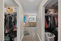 The master suite is a true retreat, featuring a spacious layout with dual walk- in closets leading to a luxurious en- suite bathroom complete with a double vanity, a deep soaking tub, and a separate walk- in shower. The second bedroom is equally comfortable, with its own bathroom just steps away.