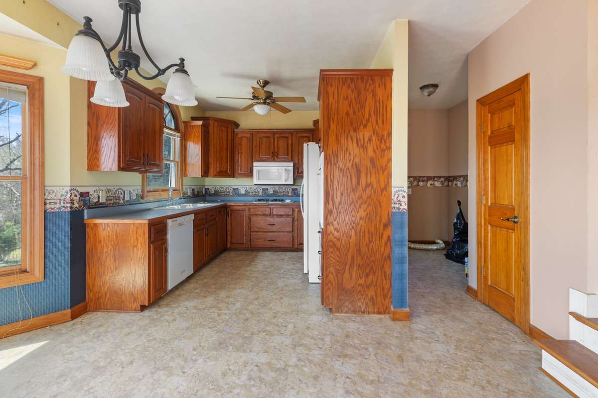 The existing home is a fixer- upper, sold AS- IS, just waiting for the right touch to bring it back to life. It offers ample space, featuring a full basement with a full bath, kitchenette, and the potential for 3 bedrooms, a spacious back porch, two small outbuildings, and access to a pond. Conveniently located with quick access to the interstate for an easy commute. With a little TLC, this property could be your dream home or an excellent investment opportunity. Come see for yourself.