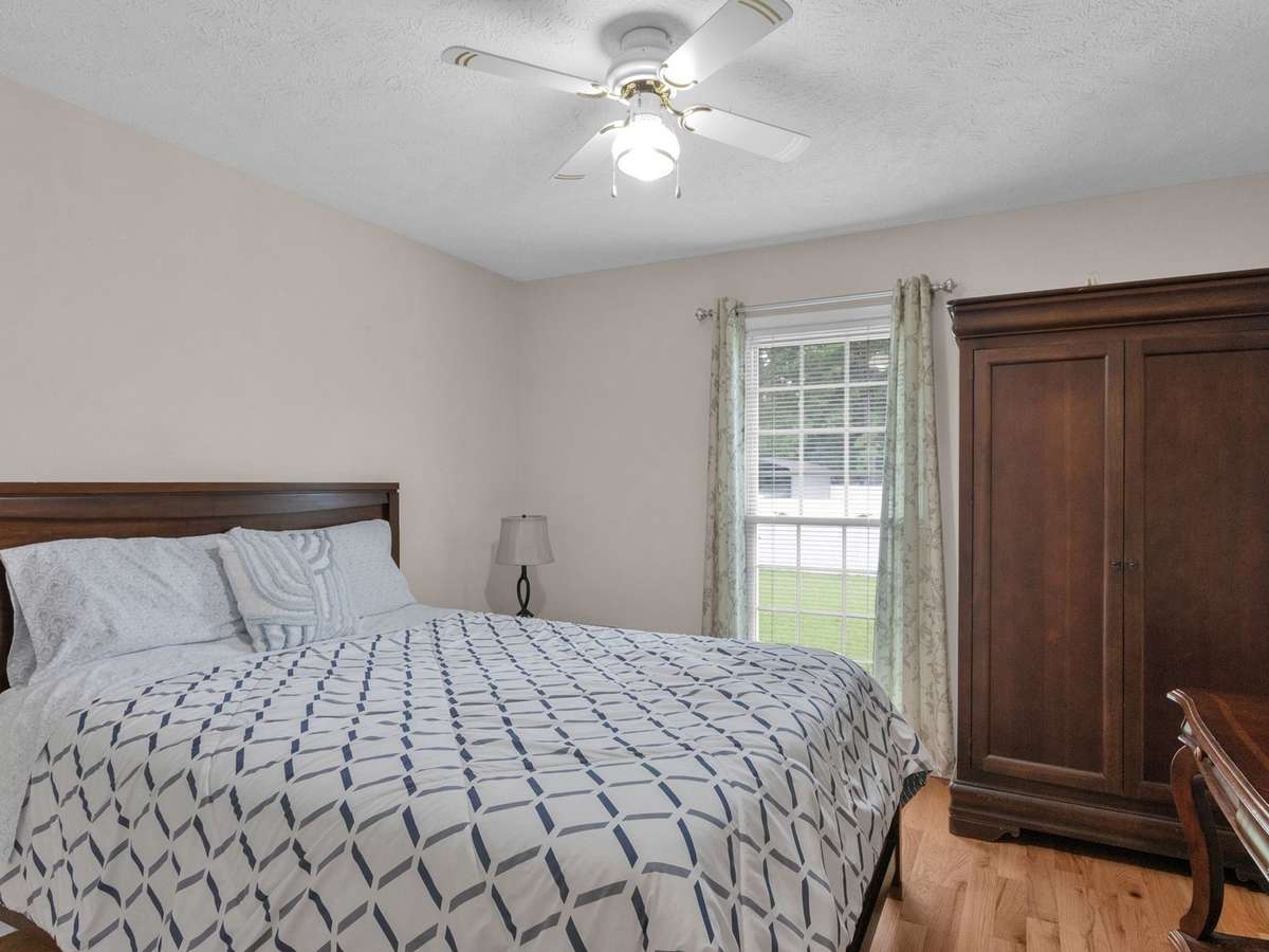 Come see this beautiful all brick home with open concept, cathedral ceilings and located on a corner lot in a quiet neighborhood. Enjoy all three bedrooms on the mail level and a bonus/ recreational room upstairs. The Primary bedroom has high ceilings and so much space. The home has a new roof, a new HVAC and the windows were just replaced less than 2 years ago. What a wonderful place to call home.
