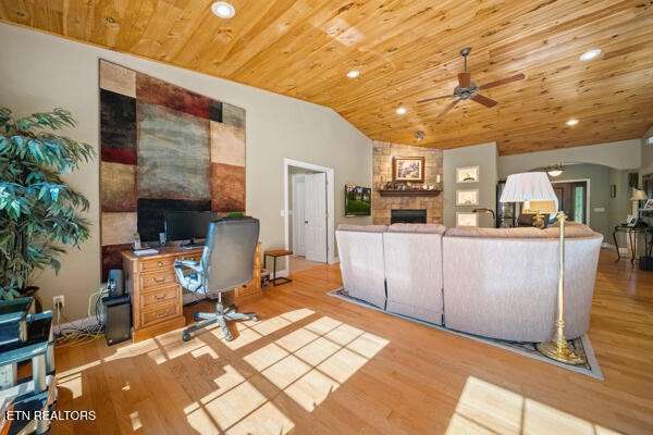 You just found your perfect home with a little hint of cabin feel! This beautiful one owner home is situated on a gorgeous landscaped 1. 2 acre corner lot that backs up to the peaceful Creekside community pond and park like setting. But that' s not all, it also backs up to Nine Mile creek too. The sellers have spared nothing on this gorgeous brick basement rancher. The elegant stone accents make it pop! As you enter this home from the wrap around front porch you will instantly notice the soaring wood tongue- and- groove ceilings in the open great room complete with an eye- catching wood burning stone fireplace. The open kitchen has lots of cabinets, quartz countertops, and beautiful new stainless steel appliances. The kitchen and great room open up to a large breakfast area overlooking the peaceful back deck. Directly off of the kitchen, this home also features a separate formal dining room providing tons of space to entertain. Off of the kitchen you will also find the laundry / mud room that has access to the garage, back deck, and also leads to the large bonus room over the garage. On the main level you will find the large primary bedroom with an equally large primary ensuite complete with double sinks, jet tub, and separate walk- in shower. The primary bedroom has an impressive walk- in closet too. Also on the main floor are the two additional bedrooms, and full bathroom.