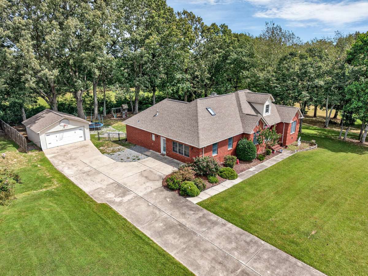 The primary suite is a true retreat, complete with its own private bath, while the additional bedrooms are well- sized and conveniently located near full baths. A detached garage adds extra parking and storage space, perfect for hobbies, equipment, or a workshop.