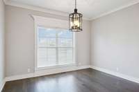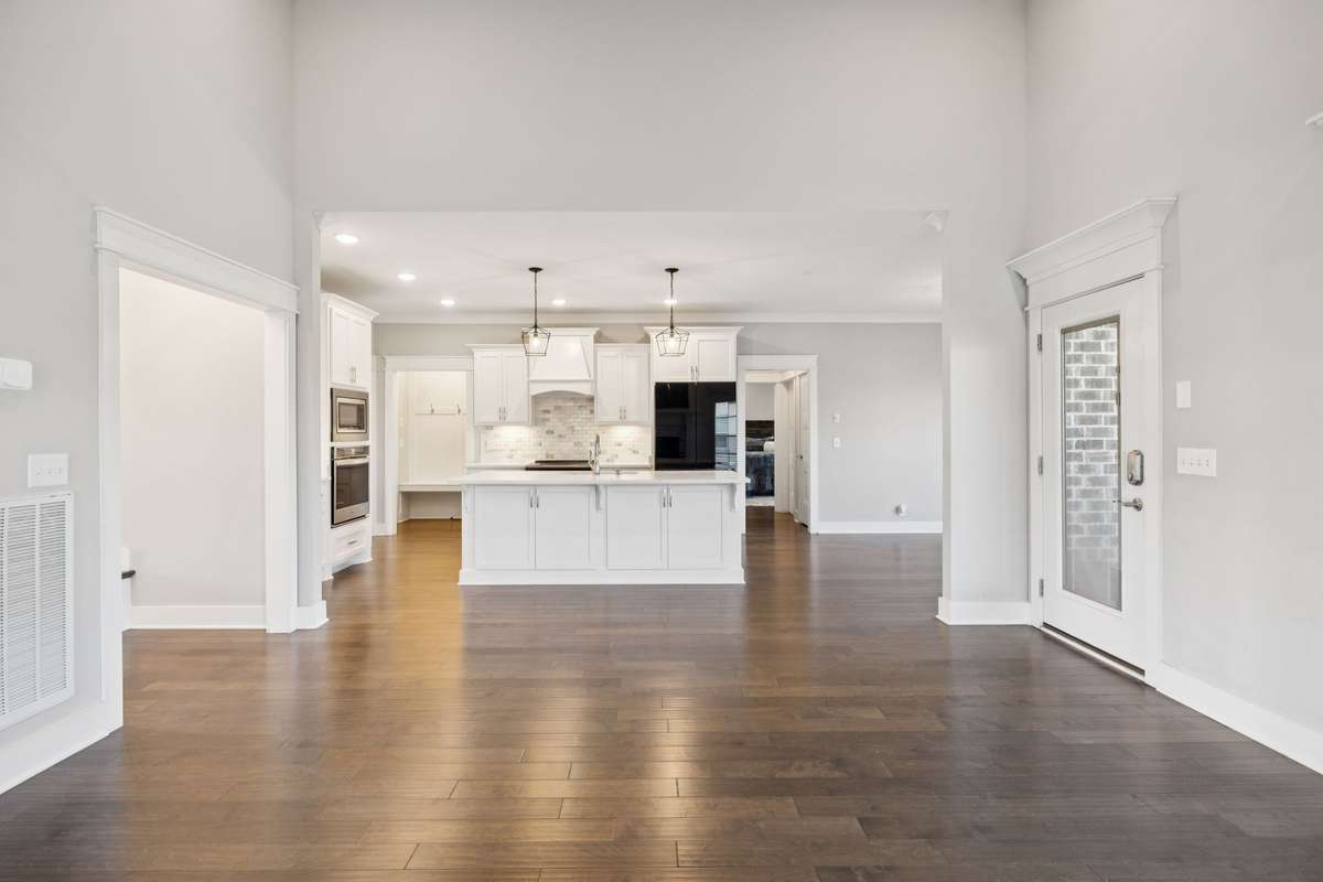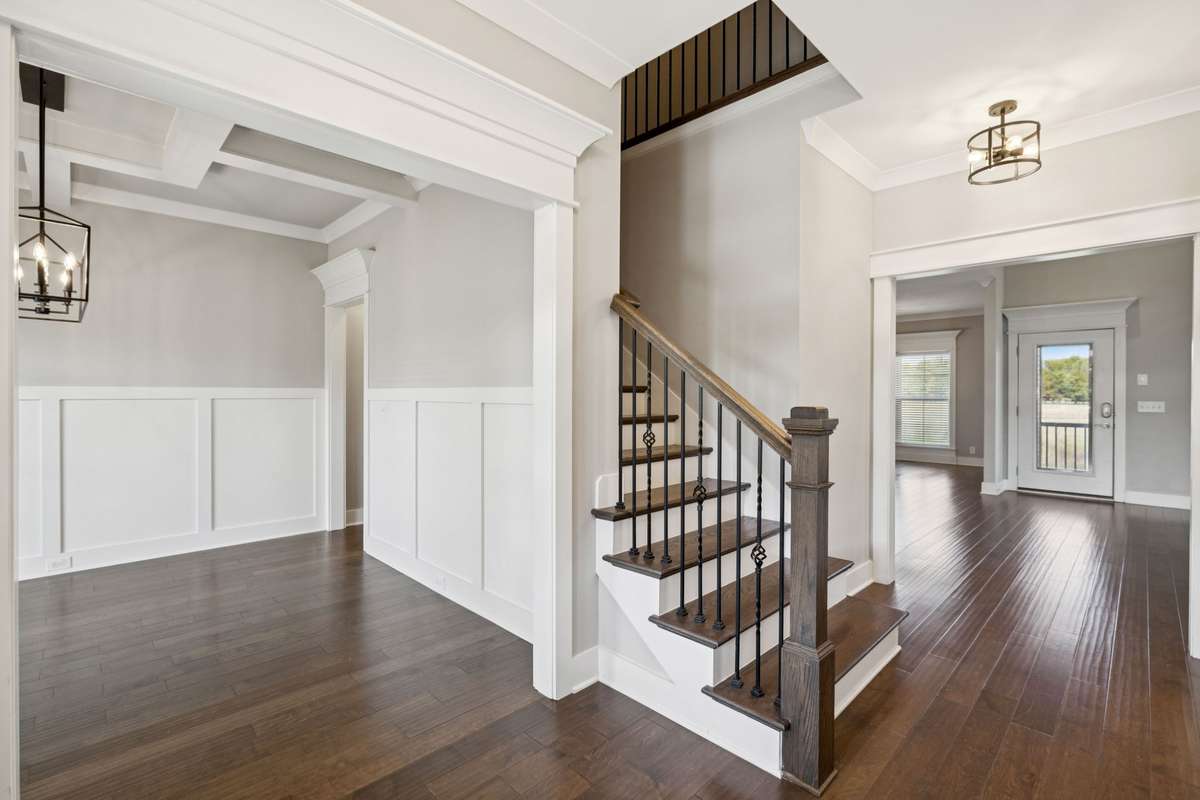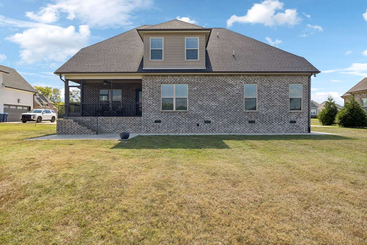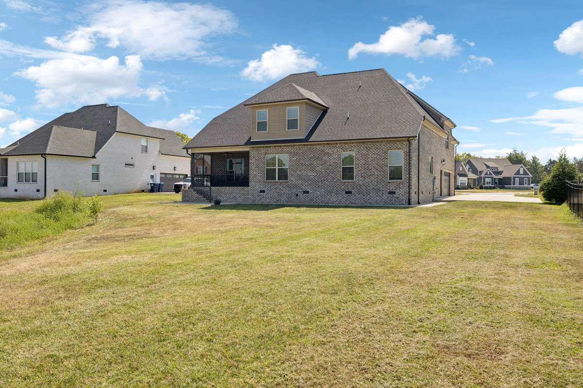 BACK ON MARKET - no fault of sellers - Take advantage! Lowest price per sq ft in the neighborhood - Stunning full- brick home in the highly sought- after Walnut Downs community! Featuring 5 spacious bedrooms and 4 full bathrooms, over 3700 sq ft, this custom- crafted residence offers luxurious touches throughout. The formal dining room with coffered ceilings, and a living room that boasts soaring ceilings and a paneled accent wall, all enhanced by elegant coved crown molding. The gourmet kitchen is a chef' s dream, featuring quartz countertops, a large center island with storage, marble backsplash, stainless steel appliances and high- end finishes throughout. The main- floor primary suite is a private retreat, with a spa- like bath that includes a custom- tiled shower, soaking tub, and separate vanities. A second main- floor bedroom is ideal for guests or a home office, with a full bath nearby. Upstairs, you’ll find three additional bedrooms with ample space and storage, two of the bedrooms sharing an adjoining bathroom, and one bedroom with another full bath in hall. One great feature is the 475 sq ft media room, complete with surround sound and projector setup; perfect for movie nights and extra space for a pool table or play area. Enjoy quiet mornings and peaceful evenings on the screened- in porch, overlooking an open field and hobby farm which means no neighbors behind you! The covered front porch, landscaped yard, and location round out this incredible property. Don’t miss this rare opportunity to own in one of the area’s most desirable neighborhoods; schedule your private tour today!