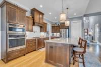 Here’s your home for the holidays right here! Welcome to this beautifully crafted single- family home nestled on a desirable corner lot in Reserves of Wright Farms. Built in 2022 and boasting close to 3, 500 sq ft of luxurious living space, this property blends elegance, comfort, and functionality. Very open floor plan makes it a perfect home for those who love to entertain. This exceptional residence features 4 spacious BRs, with the Primary Suite + 1 additional BR on the main level. As you enter the foyer, off to the right is an office space w/ french doors used by the current owners, but would make a nice formal dining area with the custom wainscotting if you would like. Gorgeous hardwood floors flow throughout, leading to an inviting great room anchored by a stunning stone fireplace w/ built- in cabinets . The gourmet kitchen showcases gleaming granite countertops, SS appliances, huge island, plenty of counter/ cabinet space, large pantry & an eat- in area w/ wainscotting. Entering from the garage you will be met with a drop zone & laundry room. Upstairs there is another bedroom w/ walk- in closet and is complemented by a bonus room complete with a stylish mini bar, ideal for entertaining guests or just for your convenience of relaxing upstairs for movie night and not having to go downstairs for drinks and a snack! Step outside to enjoy a 17x14 screened- in back porch with blackout curtains for year- round enjoyment. Right outside the porch area is a nice sized patio featuring a fairly new pergola, and a fully fenced backyard enhanced by custom landscaping. An irrigation system services both the front and back yards, ensuring lush greenery all season long. Whether gathering with friends for weekend festivities or unwinding during peaceful evenings on the porch, every detail of this property is designed to elevate your everyday living experience.