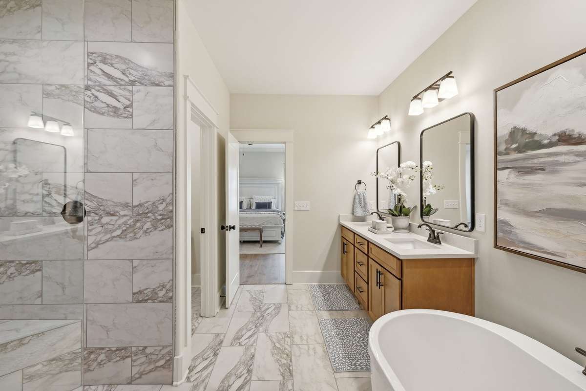 Beautiful New Community Cherry Blossom Downs | The Dogwood B | Interior Package A | 3 Bedroom | 2 Bath | Upgraded Selections Have Been Confirmed See Media Section | Built Ins | Beautiful Cabinets | Quartz Countertops | Laminated Hardwood | Backsplash | Free Standing Tub | Tile Walk in Shower | Board & Batten Shutters | No Steps | Back Porches | Fenced in Yard | HOA Mows Yards | HOA Maintains Landscaping |