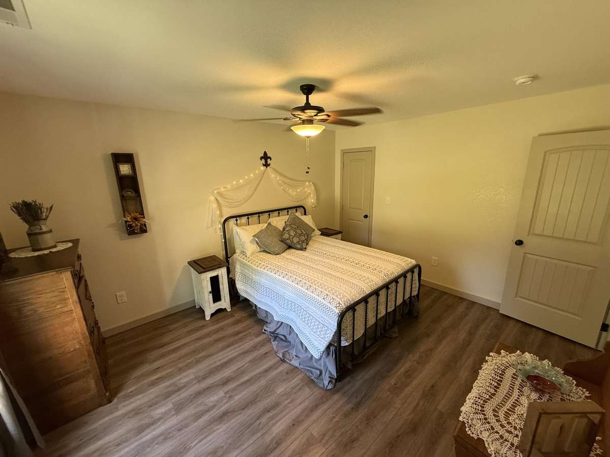Master suite with private deck access and a luxurious en- suite featuring a beautifully tiled shower. Outdoor Living at Its Finest: