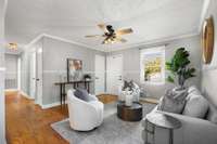 Trinity lane exit. Left on E Trinity Lane. Right on Oakwood. Home is on the right.