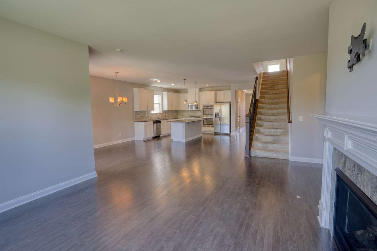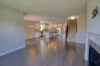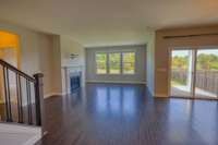 Family room overlooking the back yard- also features a gas fireplace and a mount ready for your TV!
