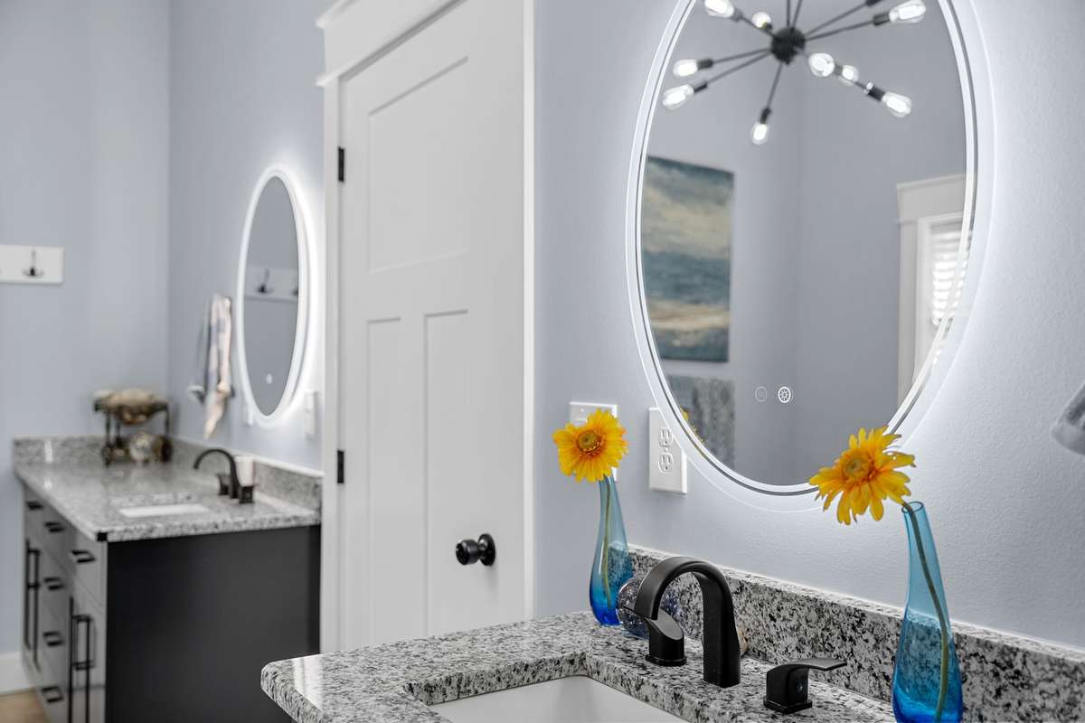 At the center of it all sits a stunning Barndominium, designed with thoughtful upgrades. The chef’s kitchen boasts 2 prep sinks, ample cabinetry, & a commercial- grade overhead range. Smart home features include Alexa lighting control, Ecobee thermostats, central vac, & 400- amp service W/ separate 200- amp ( home& shop) . The floor plan was designed with accessibility in mind, featuring ADA- compliant openings & no steps, as well as custom closets, an oversized mudroom, & custom lighting throughout. The luxurious primary suite offers two 6ft vanities & huge soaking tub.