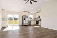 This beautiful new construction offers 3 bedrooms, 2 full baths, and an open- concept layout filled with natural light. You' ll love the vaulted ceilings, luxury vinyl plank flooring, and the modern kitchen featuring stainless steel appliances and white shaker cabinetry. The primary suite includes a walk- in closet and private bath with sleek fixtures. Enjoy peaceful country views from your backyard and easy access through the attached 2- car garage. Set on a spacious lot with wide- open views, this home blends quiet rural living with modern style and convenience. Move- in ready and waiting for you!