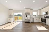 This beautiful new construction offers 3 bedrooms, 2 full baths, and an open- concept layout filled with natural light. You' ll love the vaulted ceilings, luxury vinyl plank flooring, and the modern kitchen featuring stainless steel appliances and white shaker cabinetry. The primary suite includes a walk- in closet and private bath with sleek fixtures. Enjoy peaceful country views from your backyard and easy access through the attached 2- car garage. Set on a spacious lot with wide- open views, this home blends quiet rural living with modern style and convenience. Move- in ready and waiting for you!