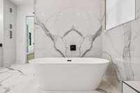 As you enter, you' re greeted by Pella doors and windows that lead into a grand living space. The main floor features two separate studies, perfect for use as home offices. The primary suite is a true sanctuary with a ceiling tub filler, heated floors, and a massive shower and closet complete with a central island. A separate primary retreat offers a private escape. The main kitchen is a chef' s dream with dual refrigerators and freezers, while a separate, fully outfitted chef’s kitchen with saloon doors provides an additional space for culinary creativity.