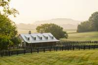 Nestled just two miles from the heart of historic Leiper’s Fork, Little Fawn Farm encompasses 97 acres of exquisitely maintained countryside along one of Middle Tennessee’s most prestigious roads. A grand entry gate sets the tone, welcoming visitors into a property defined by meticulous attention to detail and timeless Southern charm. As you wind down the long drive, passing a tranquil pond with a fountain, you’re enveloped by sweeping views of rolling pastures and wooded ridges. The main residence, a charming three- bedroom home designed to capture natural light, sits perfectly elevated to take in the scenic vistas. The entire third floor is dedicated to a luxurious primary suite offering unobstructed views for miles. Entertaining is effortless here, thanks to a stunning 35x40 party barn. Once a working barn, it’s been transformed into an entertainer’s paradise featuring multiple sitting areas, TVs for game days, a loft area, half bath, and kitchen. Glass bay doors open wide to let in the crisp Tennessee air, while a covered porch overlooks the new horse barn and beautifully fenced pastures. An inviting firepit and newly installed outdoor kitchen complete the barn’s alfresco offerings. For equestrian enthusiasts, the horse barn surpasses expectations with custom- built 14x14 stalls, indoor and outdoor wash bays, office, and a well- appointed tack room. Additional structures include a dedicated donkey barn, a spacious 30x50 detached four- bay garage ideal for a car collection, small barn with half bath and a workshop garage. The estate’s grounds boast natural water features like a spring- fed, stocked pond and a stunning swimming hole with stone coping, a waterfront fire pit and graceful waterfalls. The property enjoys frontage on Murfrees Creek for fishing, while deer and wild turkey are bountiful for the outdoor enthusiasts. Little Fawn Farm offers ample opportunities for expansion with an approved 12- bedroom perk site and three additional build sites.