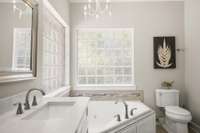 The Primary Suite is a private retreat located away from the living areas on the back of the home with access to the Screened Porch. Featuring fresh paint , the Primary Bedroom is generously- sized and features an updated Bathroom with double sink vanity; jetted tub; walk- in shower with glass enclosure; and walk- in closet. Out the back is a screened deck and large uncovered deck. Stairs lead from the Great Room to a spacious finished basement with a bathroom and kitchen. There is HVAC throughout the basement! Additional parking for a RV in back of the home.