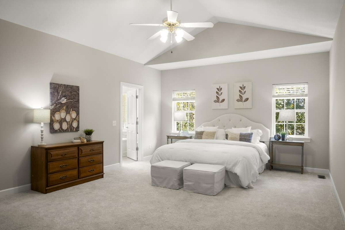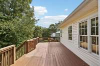 The Primary Suite is a private retreat located away from the living areas on the back of the home with access to the Screened Porch. Featuring fresh paint , the Primary Bedroom is generously- sized and features an updated Bathroom with double sink vanity; jetted tub; walk- in shower with glass enclosure; and walk- in closet. Out the back is a screened deck and large uncovered deck. Stairs lead from the Great Room to a spacious finished basement with a bathroom and kitchen. There is HVAC throughout the basement! Additional parking for a RV in back of the home.