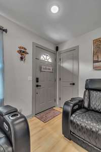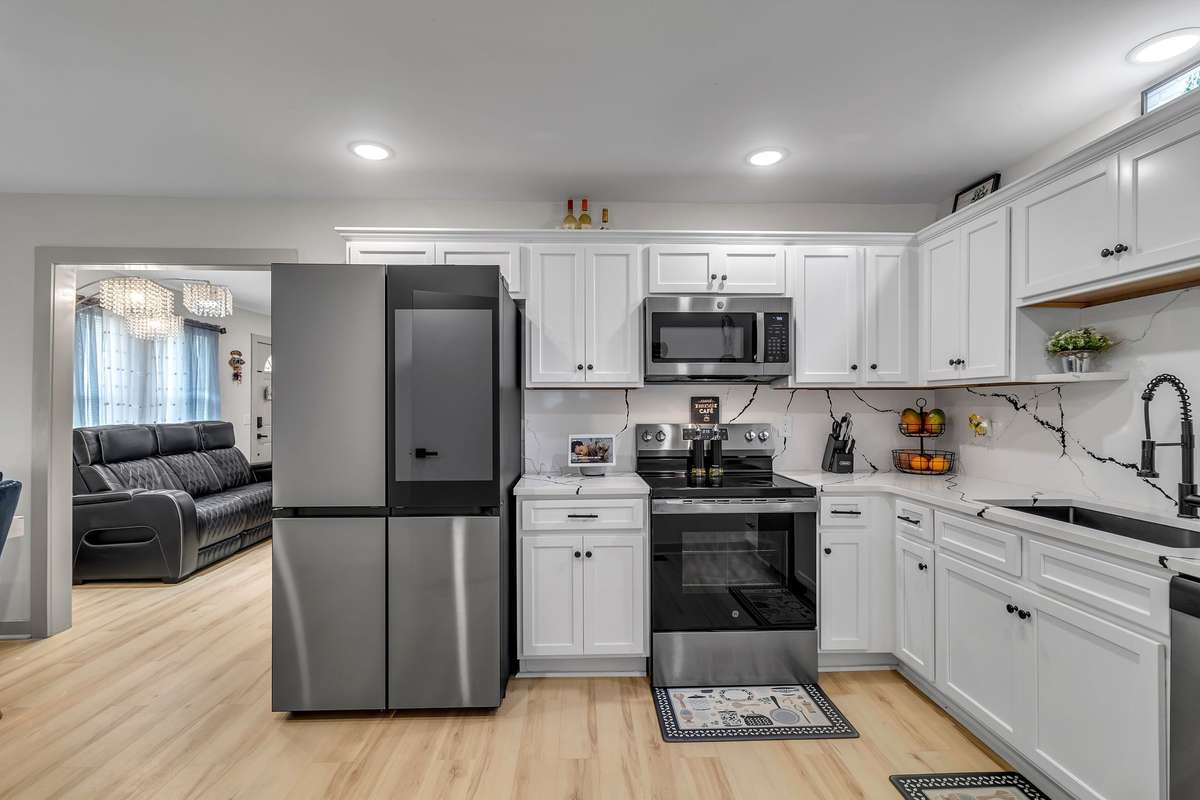 The seller has put quartz countertops in the kitchen and the hall bath and they are absolutely beautiful. SS appliances. LVP flooring. New windows. Metal roof. The fridge in the kitchen does not convey but the fridge in the garage does stay with the home. The house was completely renovated about a year ago. Lots of trees in the yard for shading, comfort, and beauty. The property backs up to Buchanan Elementery with a walking path to the school. You will fall in love with this house!!!