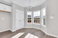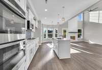 The main living area boasts a breathtaking two- story great room with an open concept layout flowing seamlessly into the gourmet kitchen, complete with an island, double ovens, a cozy eat- in nook, and a spacious pantry. A formal dining room provides an ideal space for entertaining guests or hosting gatherings.