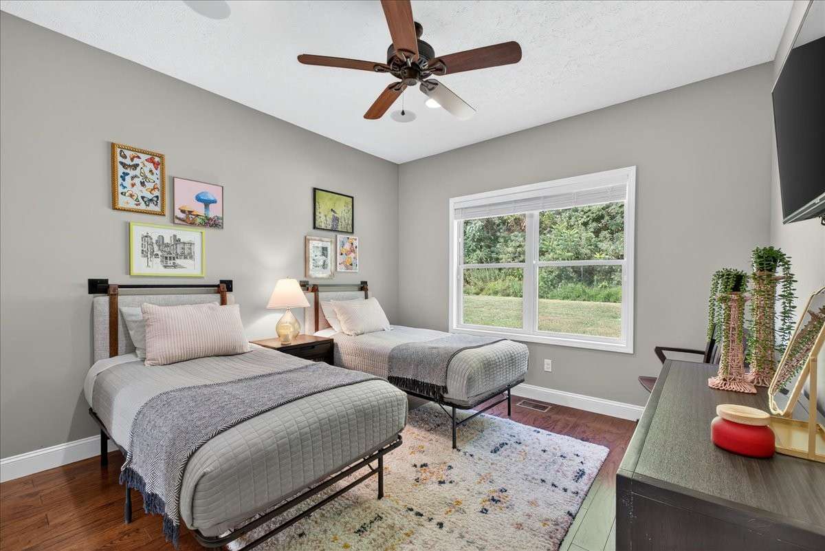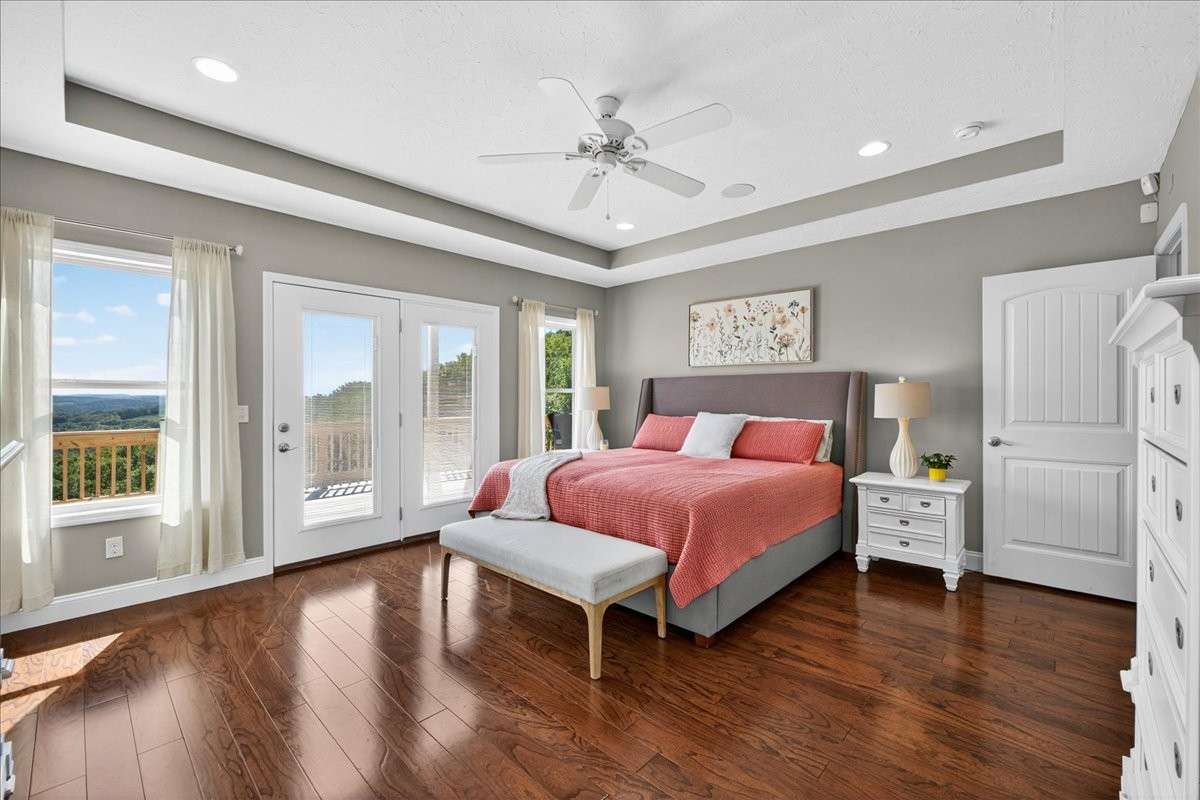 Southern Elegance with Rooftop Sunsets and River Valley Views. Open the front door to a dramatic two- story wall of glass, framing breathtaking vistas high above the Cumberland River Valley. Designed for seamless indoor- outdoor living, the home is surrounded by a charming Southern porch, an expansive deck, and a walk- out patio, giving nearly every room access to fresh air and sweeping views.