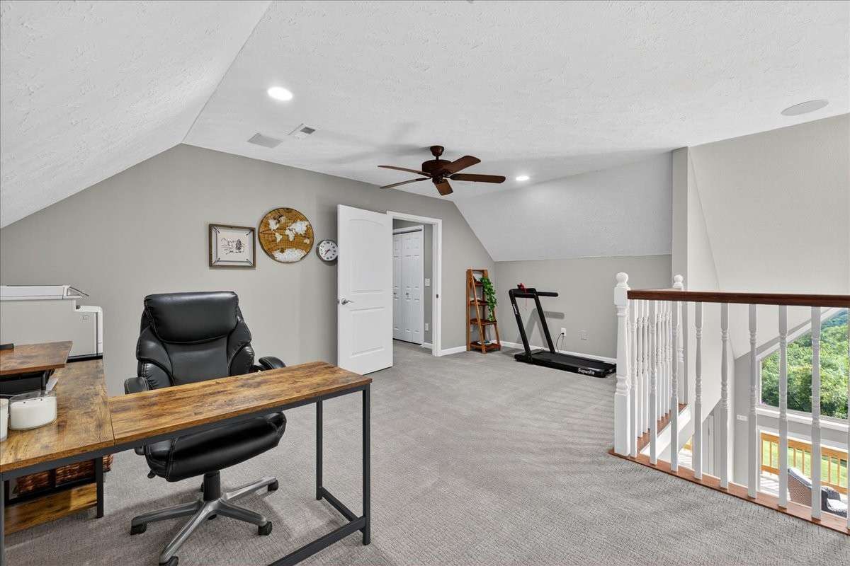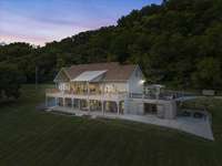 Southern Elegance with Rooftop Sunsets and River Valley Views. Open the front door to a dramatic two- story wall of glass, framing breathtaking vistas high above the Cumberland River Valley. Designed for seamless indoor- outdoor living, the home is surrounded by a charming Southern porch, an expansive deck, and a walk- out patio, giving nearly every room access to fresh air and sweeping views.
