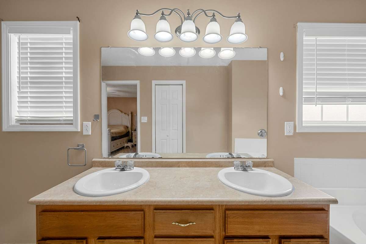 The bright eat- in kitchen features stainless steel appliances and an oversized dining area, ideal for family gatherings or entertaining friends. The main- level owner’s suite offers a walk- in closet and a private bath with a separate tub and shower for your retreat at the end of the day.