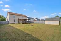 Out back, enjoy the covered deck overlooking a large fenced yard — perfect for get togethers, gardening, or whatever — plus a storage shed for all your extras.