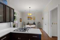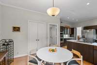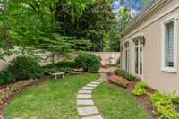 Soaring ceilings and light- filled rooms are the marks of distinction of this beautiful home. Enter the 2- story foyer with a dramatic staircase. To your left is a grand dining room with a magnificent crystal chandelier. To your right is the impressive living room with a mirrored fireplace. The primary suite is enormous! It has a fireplace, large windows looking out into the private garden, and a sumptuous primary bath with a soaking tub, a separate shower, and a huge walk- in closet. Upstairs are 2 large bedrooms with a Jack + Jill bath. The home has been freshly painted. You will enjoy the garden views from the windows, and the patio is walled and very private.