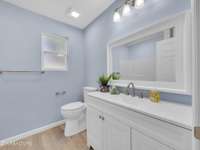 Inside, you' ll find three spacious bedrooms, including a primary suite with a walk- in closet for all your storage needs. The two additional bedrooms boast high ceilings, adding to the bright, airy feel of the home. Both bathrooms feature brand- new granite vanities, offering a touch of modern luxury to this charming country retreat.