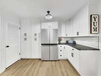 This beautifully renovated townhome features LVP flooring, custom cabinets, granite countertops, farmhouse sink, and stylish fixtures. Plantation shutters add charm to the bedrooms, while the wood- burning fireplace and bay window fill the living room with warmth and natural light.