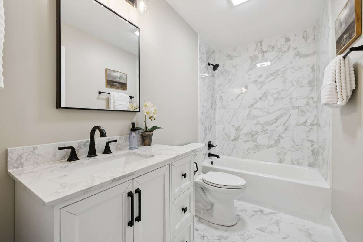 Step inside to gorgeous hardwood floors, a vaulted ceiling, and modern finishes throughout. The kitchen features elegant quartz countertops, while the bathrooms are equipped with tile floors and tile surrounds, Bluetooth fans for added convenience. Additional highlights include a tankless water heater and an encapsulated crawl space, ensuring efficiency and durability.
