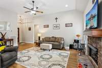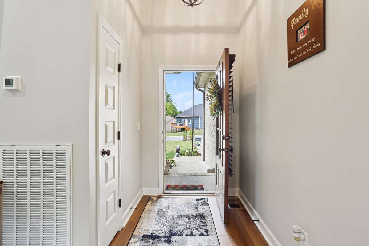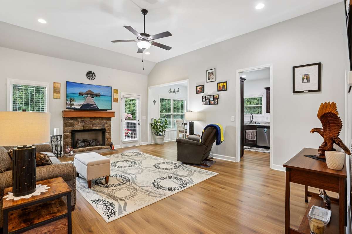 This impeccably maintained 3 bedroom, 2 bath home is situated on a spacious lot with no HOA. This like new move- in ready property offers comfort, style, and convenience just minutes from I- 65, schools, shopping, and dining. Step inside to soaring 11- foot ceilings and brand- new LVP flooring that flows throughout the home. The open living room features a stunning stone fireplace, creating a warm and inviting space perfect for relaxing or entertaining. The kitchen offers ample cabinet space, stainless steel appliances, and a functional layout for everyday living. The split- bedroom floor plan provides privacy, with a spacious primary suite and two additional well- sized bedrooms. Step outside to enjoy the fully fenced yard, complete with brand- new Trex decking! The recently encapsulated crawlspace offers cleanliness, peace of mind, and protection from unwanted moisture or pests.
